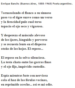 passo vai o tigre, suave como um verso,
