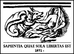 A frase é de Lúcio Aneu Sêneca e quer dizer “somente a sabedoria é liberdade”. A ilustração é a representação da sapientia entre as sete virtudes cardinais, esculpida na tumba do Papa Clemente II na Catedral de Bamberg, em 1047.