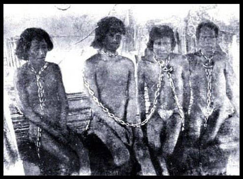 Outra imagem muito associada aos últimos charruas parece corresponder, na verdade, a indígenas aprisionados no alto Amazonas. Uma imagem deprimente principalmente se confrontada às principais características consagradas àqueles povos: valentia, bravura, etc, etc, etc.